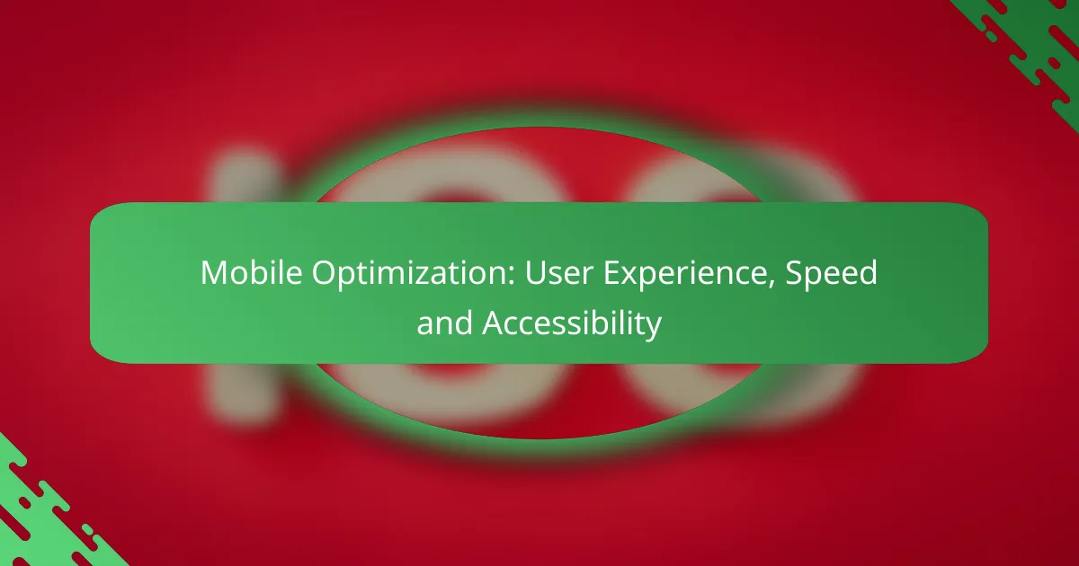 Mobile optimization is essential for enhancing user experience, speed, and accessibility on smartphones and tablets. By prioritizing responsive design, intuitive navigation, and fast load times, businesses can create a seamless experience that engages users effectively. Additionally, ensuring accessibility for all users, including those with disabilities, is crucial for meeting diverse needs and adhering to established guidelines.